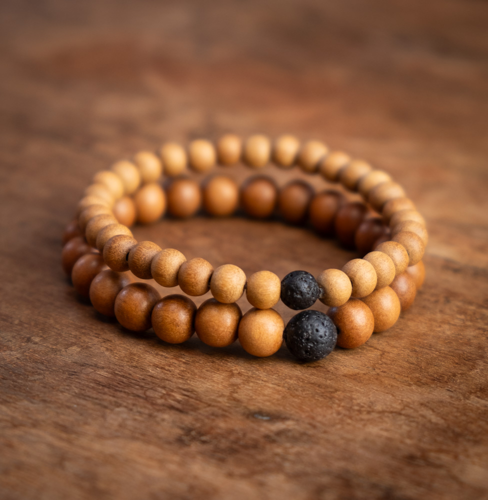 This bracelet naturally carries the natural sweet and earthy fragrance of sandalwood. Featuring a Lava Stone bead.